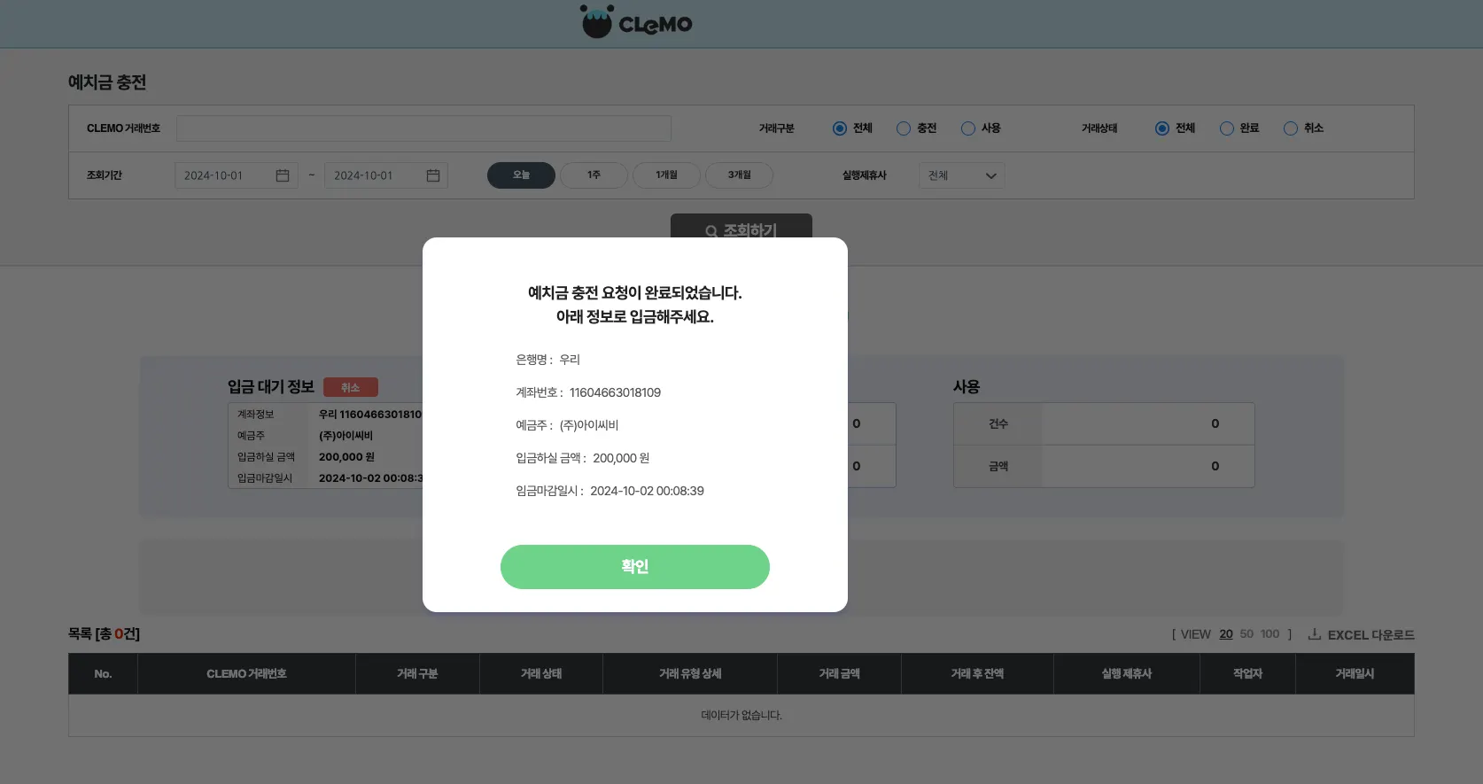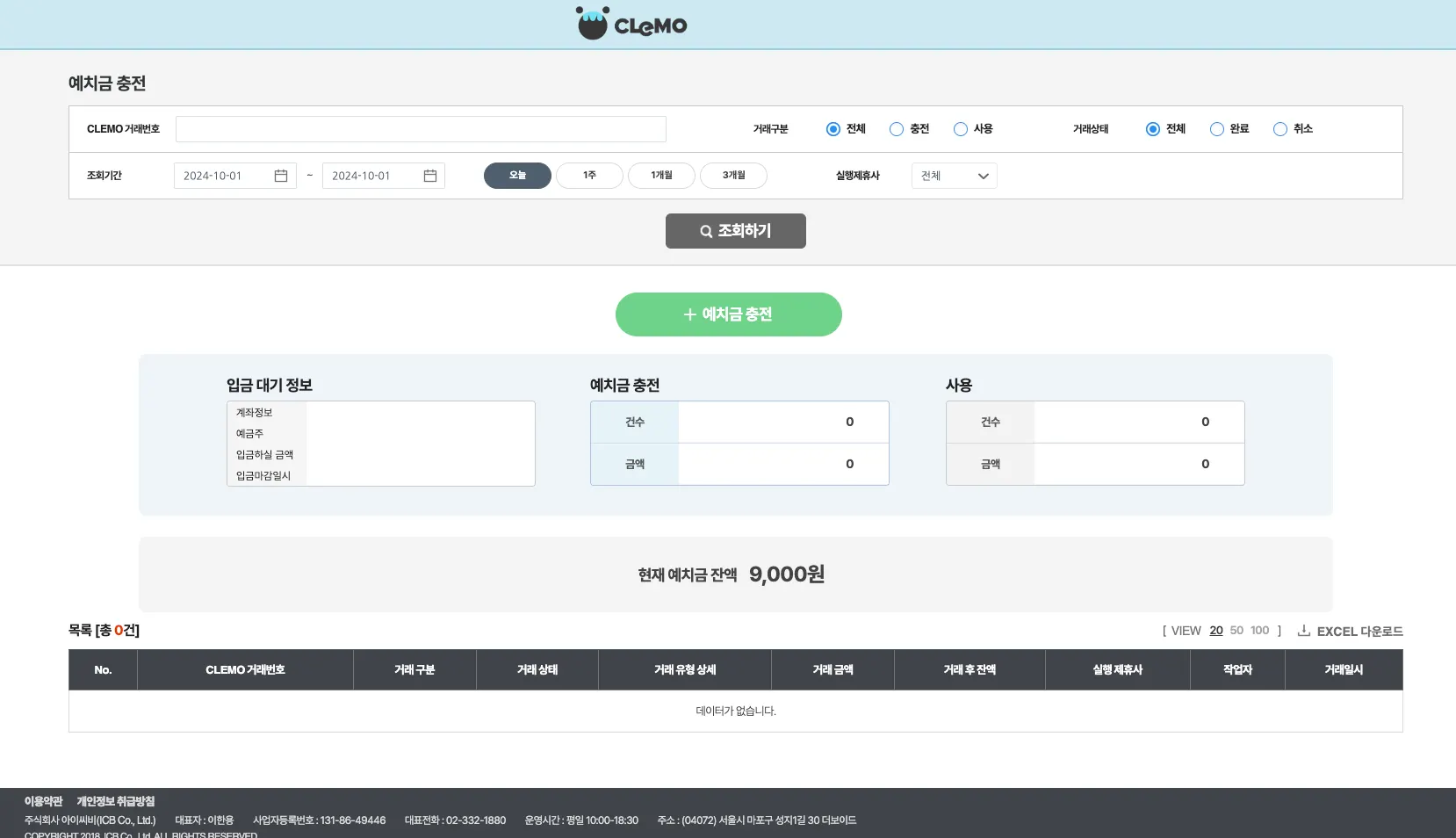 좌측 메뉴에서 예치금관리 - 예치금 충전 클릭