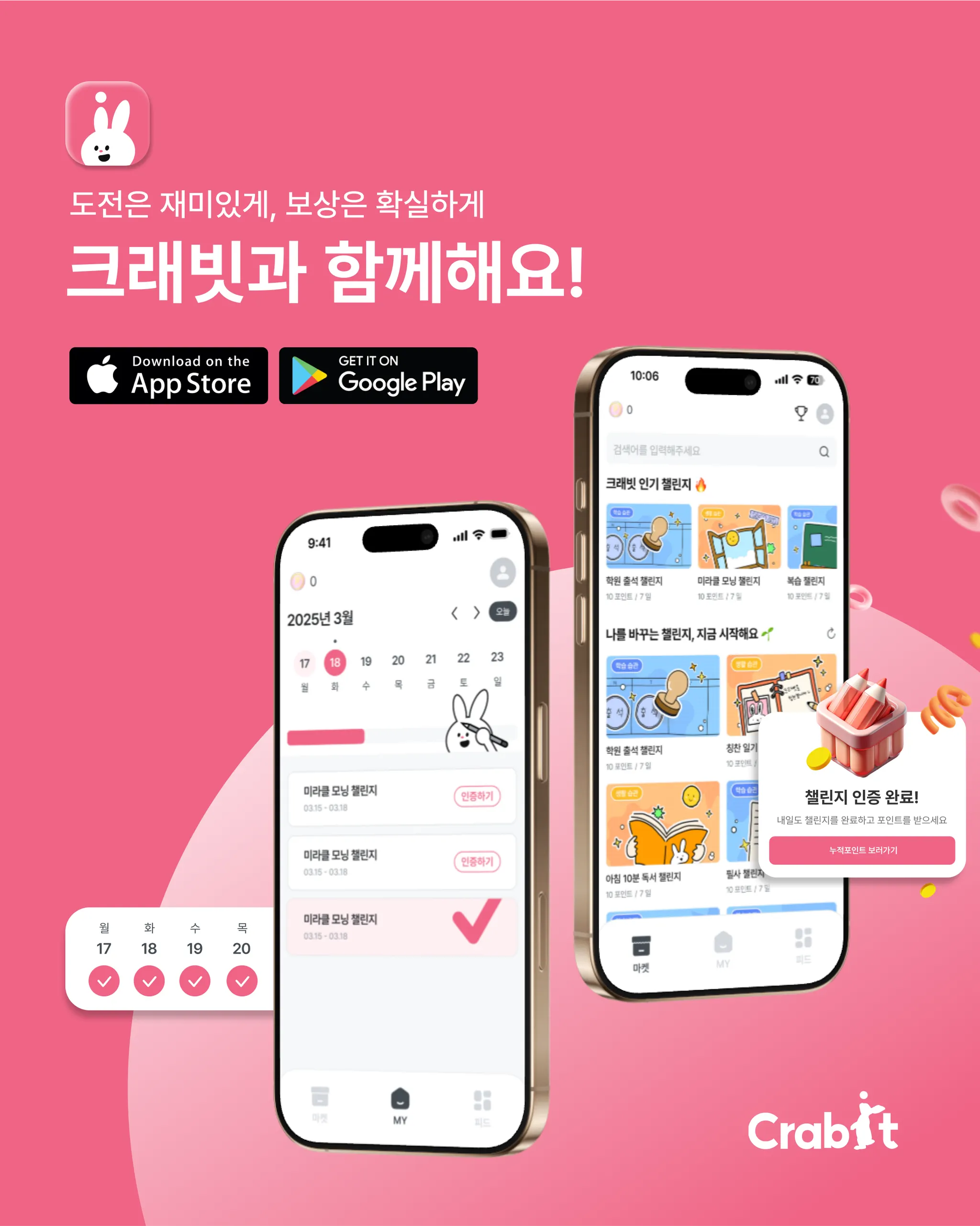 크래빗 챌린지 앱과 장학카드 모두 사용한다면?