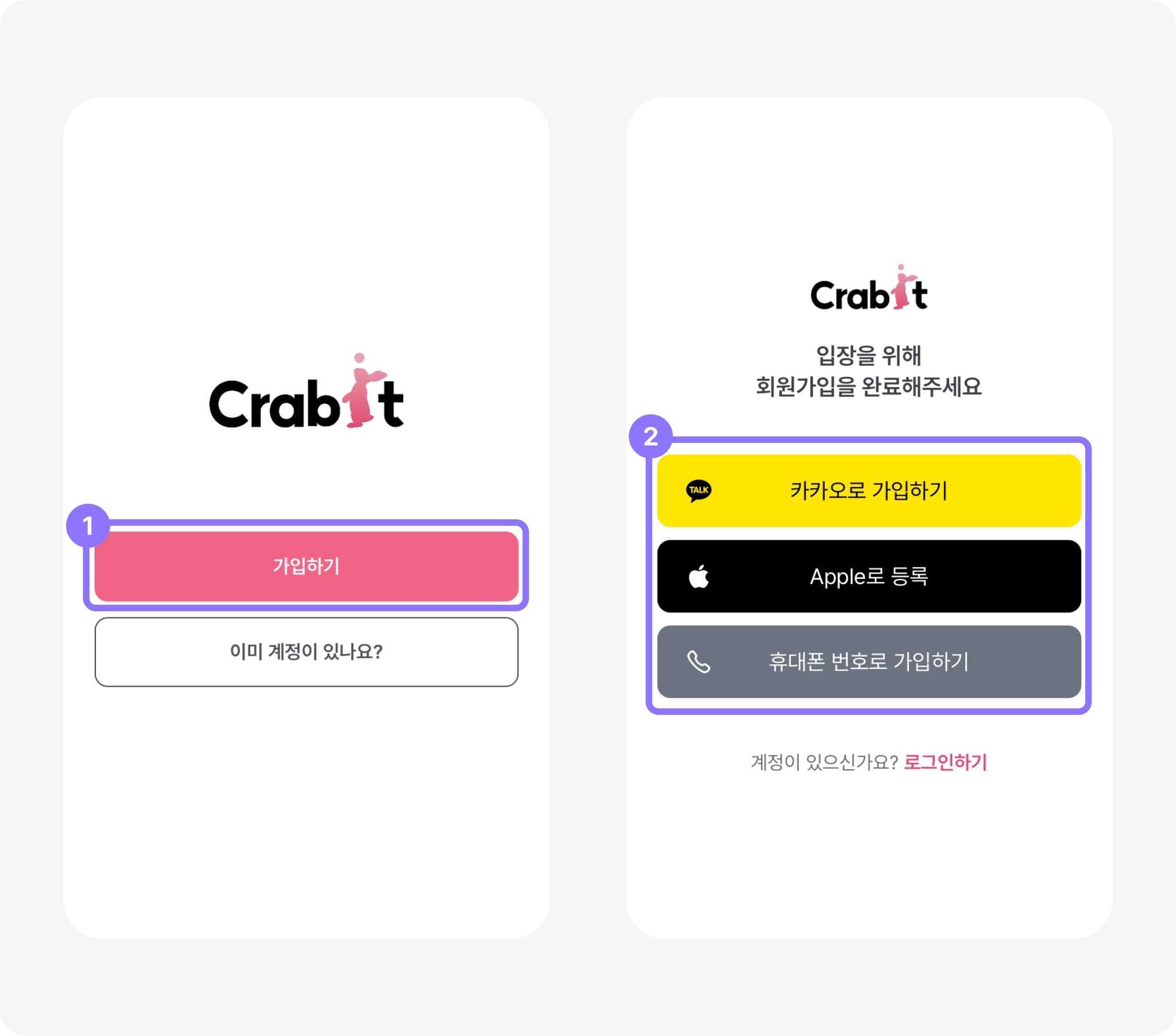 [가입하기] - 원하는 가입 방법을 선택해 주세요