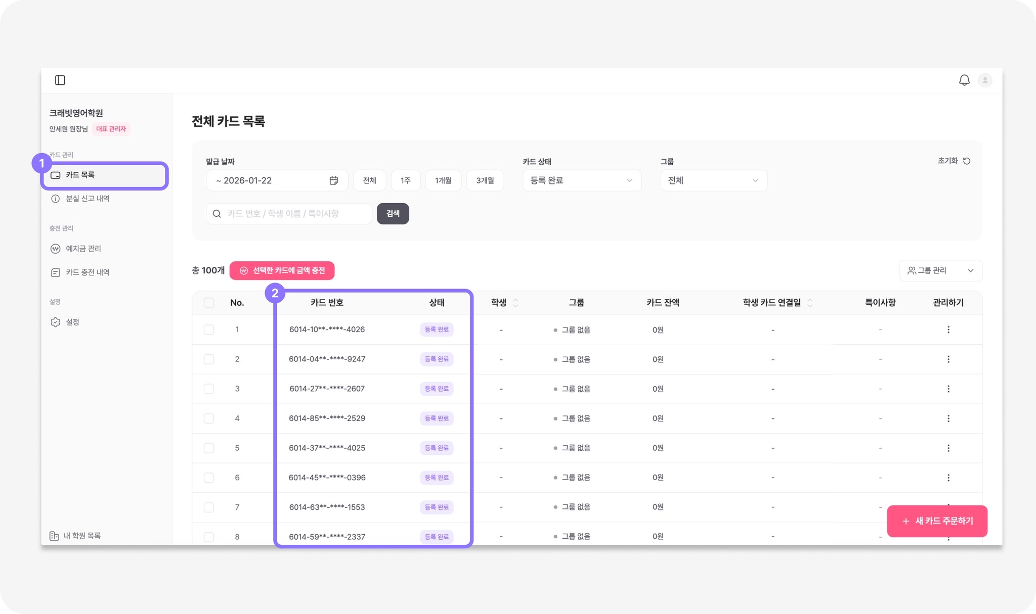 카드 제작중 : 카드 디자인 확정 후, 실제 카드를 제작 중이에요.