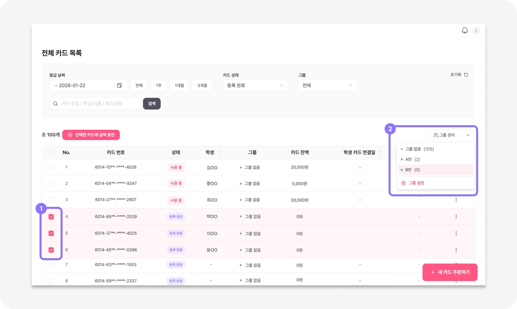 카드 주문・사용